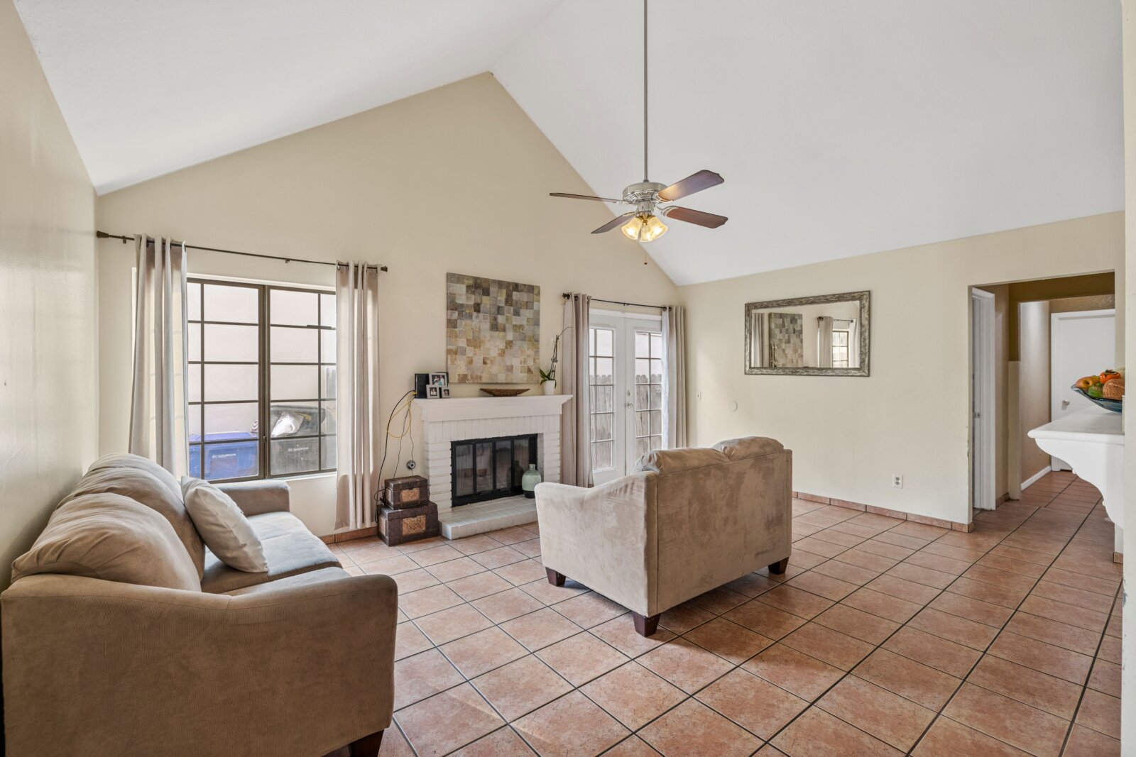 Look! A Storybook-like Charmer in the desirable New Haven Community located in Jurupa Hills! This cozy 3 bedrooms, 2 bath home offers a whimsical feel from the moment you arrive, not to mention the street is adorable and located on a quiet cut-de-sac. Front patio offers enough room to add some cute patio furniture and some potted plants to delight your guests as they walk up to your new home, entering into an inviting living room with brick fireplace with mantel adds a warm ambiance with plenty of natural light. Entertain guests as you cook and chat from the nearby kitchen with vaulted ceilings or the formal dinning area, this close open concept makes for an enjoyable encounter with guests while making memories that will last a lifetime. The Master bedroom has an in-suite bathroom with shower and French doors that conveniently provides access to the back. The backyard offers a covered patio and more than enough space to BBQ and enjoy family and friends this holiday season! This home has an oversized 1-car attached garage, can also be used for extra space such as a game room or gym, so many options for the garage space. This is one you won't want to miss!